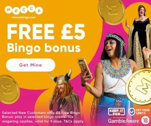 New Customers. Deposit (Paypal & PaySafe excluded) & play £10 in selected Bingo rooms within 7 days. Spins only on specific game. Wagering and expiry dates vary. T&Cs apply.