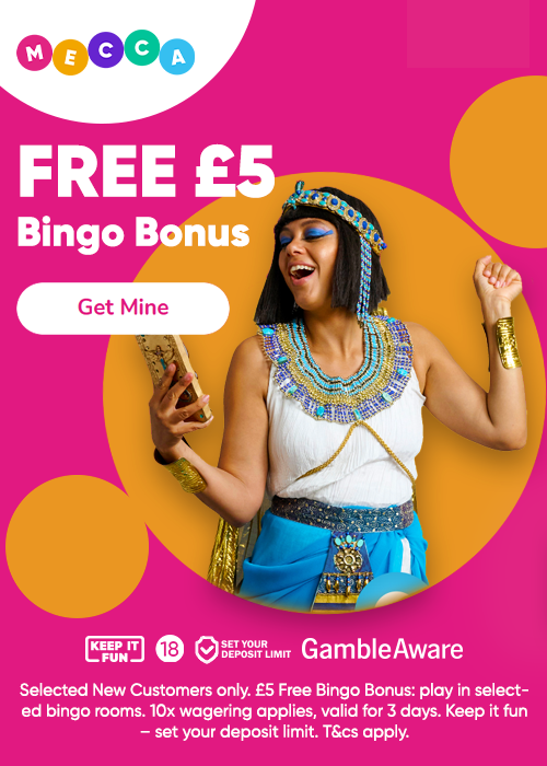 The promotion is only open to new customer of Mecca Bingo who are aged 18 years & over and can view “Free £5 Bingo Bonus” promotion in the “Promos“ section of their account.